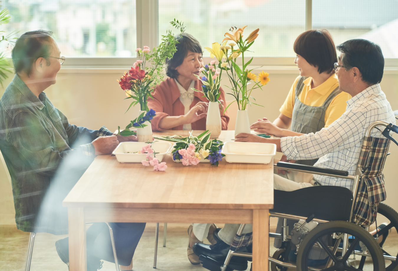 当社の事業は、利他の心を大切にし、介護・障害福祉を通じて社会全体に笑顔を広げることを目指しています。